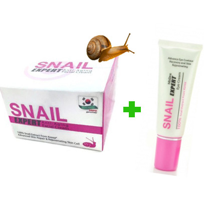 Набор Корейской косметики для лица на основе фермента слизи улитки Snail Expert Mistine: крем для лица и крем под глаза со скидкой.