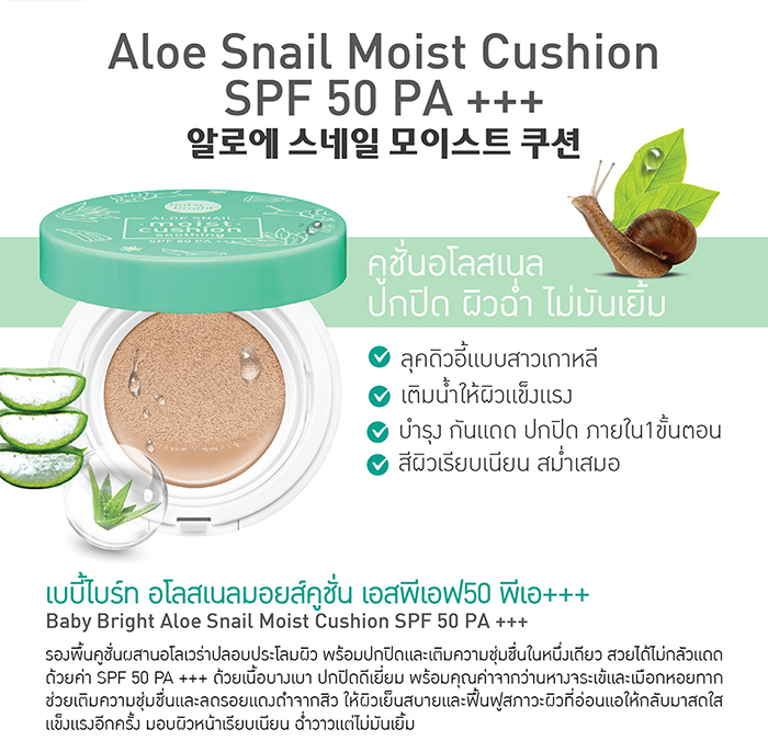 Aloe Snail Moist Cushion SPF50 PA+++ Baby Bright #23 Natural Bright 6 gr. Thailand