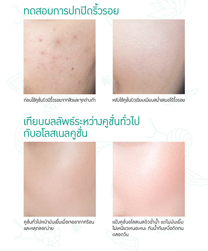 Вещества, содержащиеся в кушоне, увлажняют кожу, не оставляя жирного блеска, защищают от ультрафиолета.