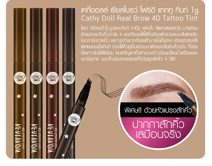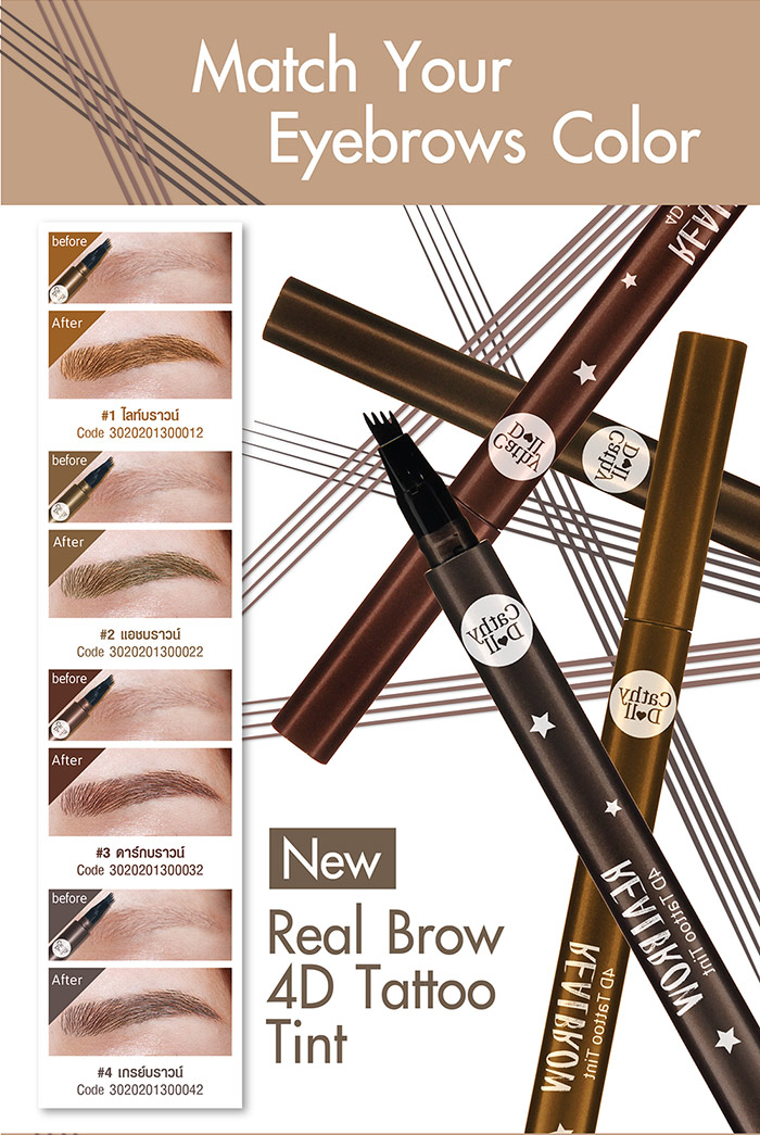 Cathy Doll Real Brow 4D Tattoo Tint #02 Ash Brown. Thailand