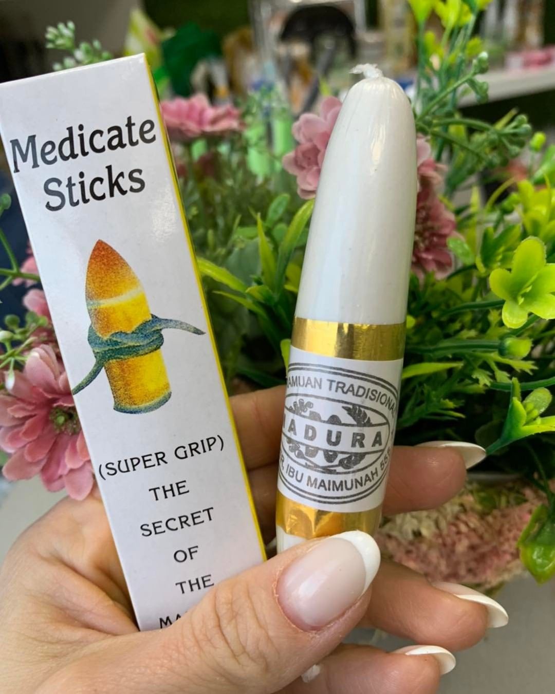 Женская травяная палочка из Таиланда (интимный карандаш) для сужения влагалища MADURA Super Grip original medicate sticks также имеет следующие распространенные названия в Азии за свои свойства: "Супер захват" или "Эффект девственности", оказывает сокращающее и очищающее действие.